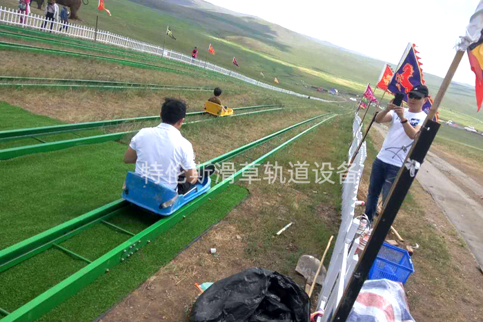 安裝完成正在驗(yàn)收的滑草軌道工程